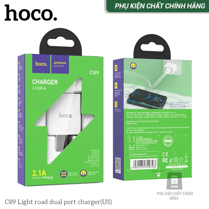 Đặc tính sản phẩm Bộ sạc 2 cổng sạc HOCO C89 công suất 2.1A kèm dây cáp dài 1m hàng chính hãng cao cấp giá tốt.