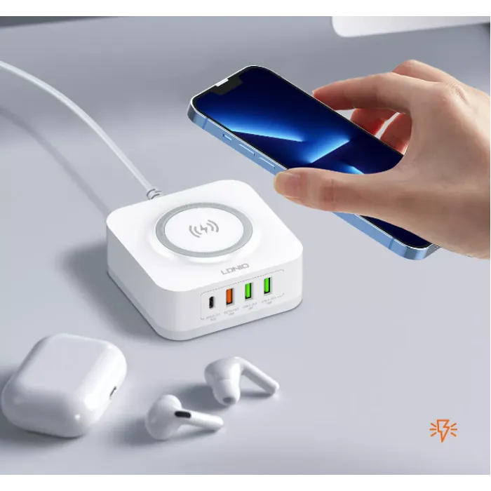 -LDNIO AW004 là bộ sạc 2 trong 1, có nghĩa là nó có thể sạc các tiện ích/thiết bị qua cáp hoặc không dây (Sạc không dây).